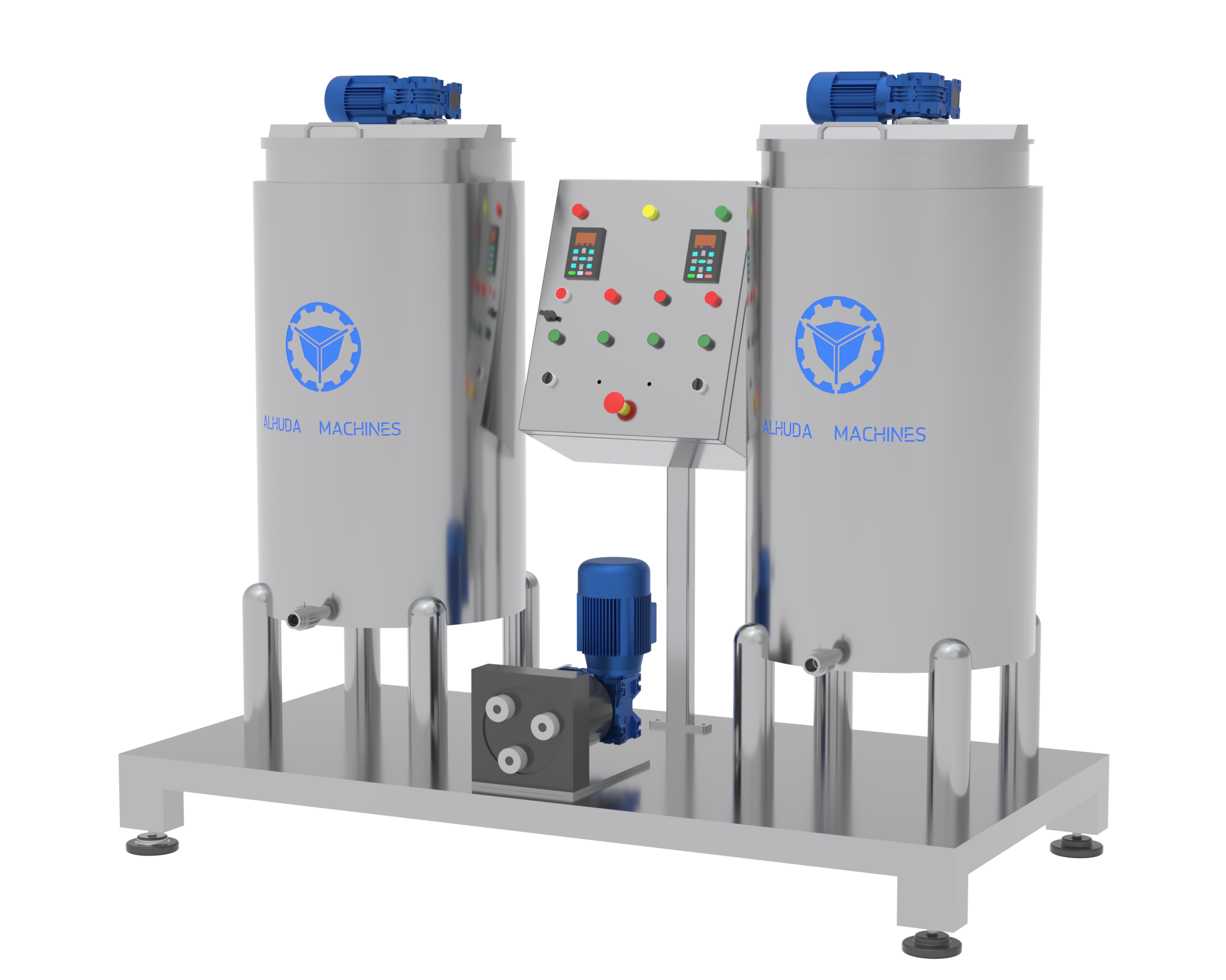 🔹 تجهيز النكهات والسوائل المضافة مسبقًا مع أنظمة تسخين وتحريك لضمان ثبات الطعم.