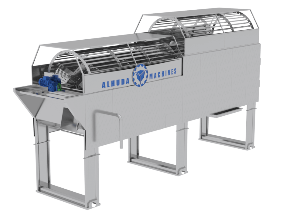 تُعد ماكينة غسيل البطاطس المرحلة الأولى في عملية تجهيز البطاطس، حيث تعمل على إزالة الأتربة والأوساخ العالقة لضمان الحصول على حبات بطاطس نظيفة وجاهزة للتصنيع. تم تصميمها لتكون خط الدفاع الأول في عملية الإنتاج، وذلك من خلال غسل البطاطس باستخدام غربال أسطواني متغير السرعات، والذي يقوم بتقليب الحبات وتغطيسها بالماء النظيف لإزالة الشوائب قبل انتقالها إلى مرحلة التقشير والتصنيع. المواصفات الفنية: